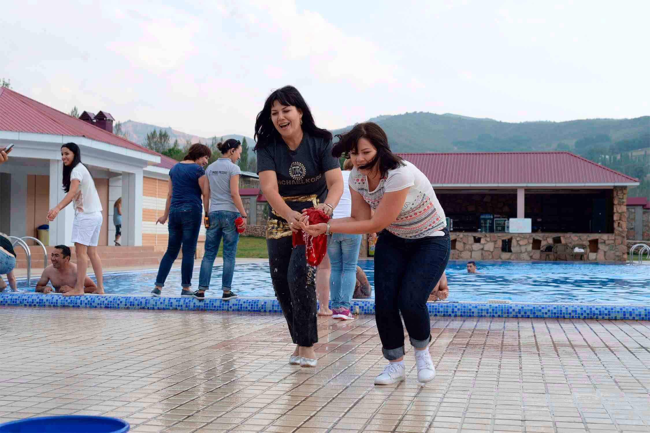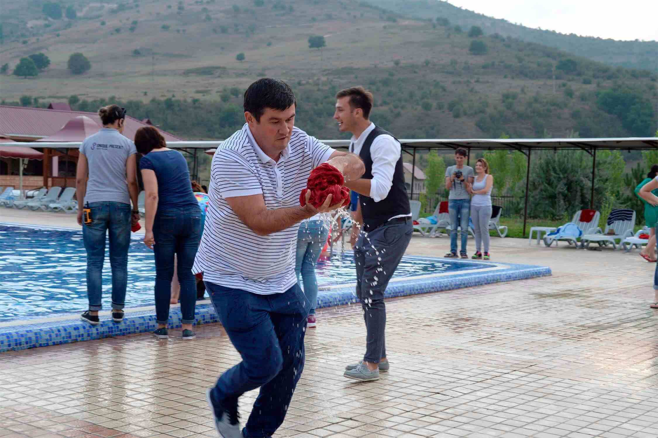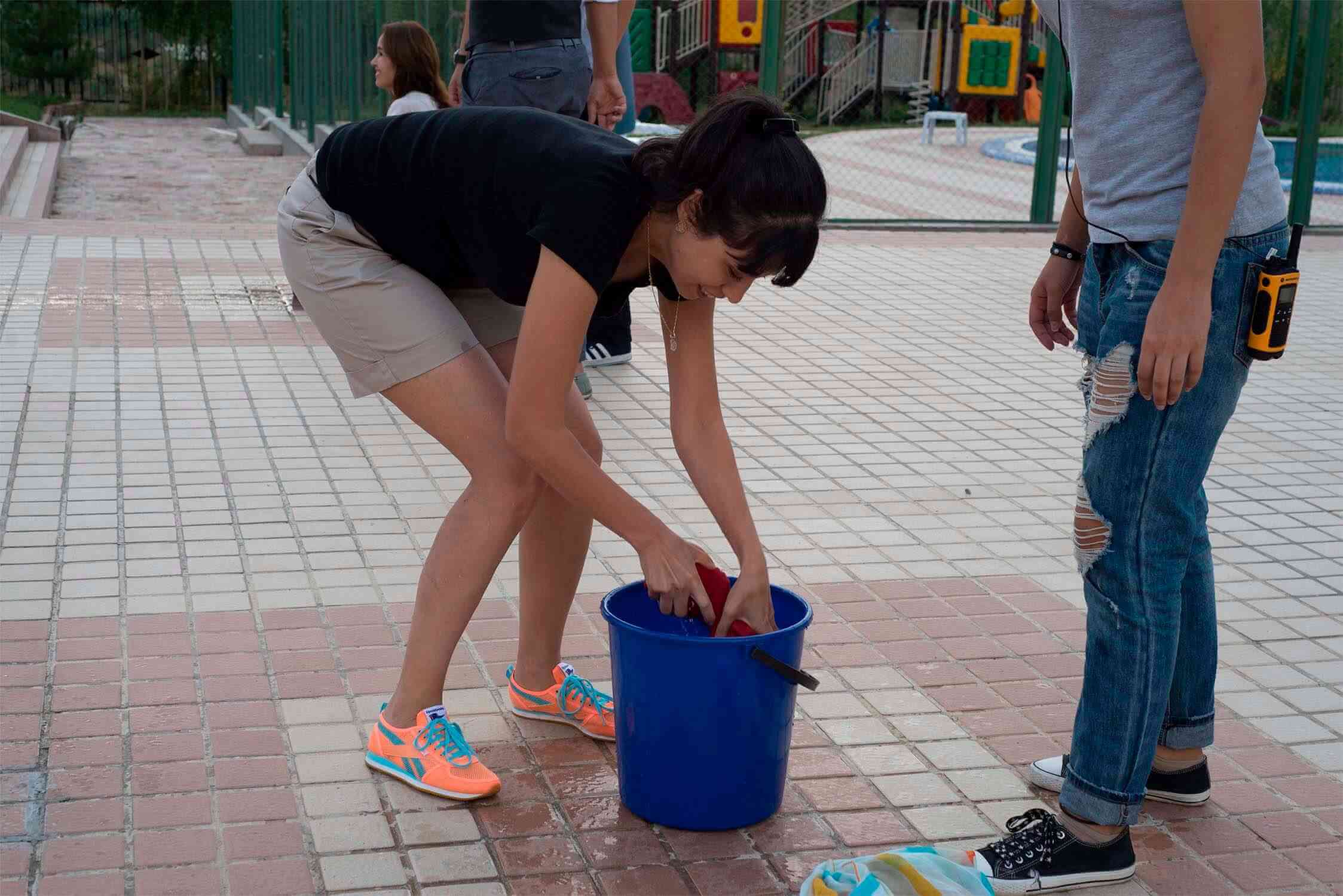 Летний водяной тимбилдинг прошел очень весело и зажигательно! Выжать в ведро как можно больше воды из бассейна, вытащить из воды и собрать все части мозайки и все это быстро и слажено – настоящая командная работа!