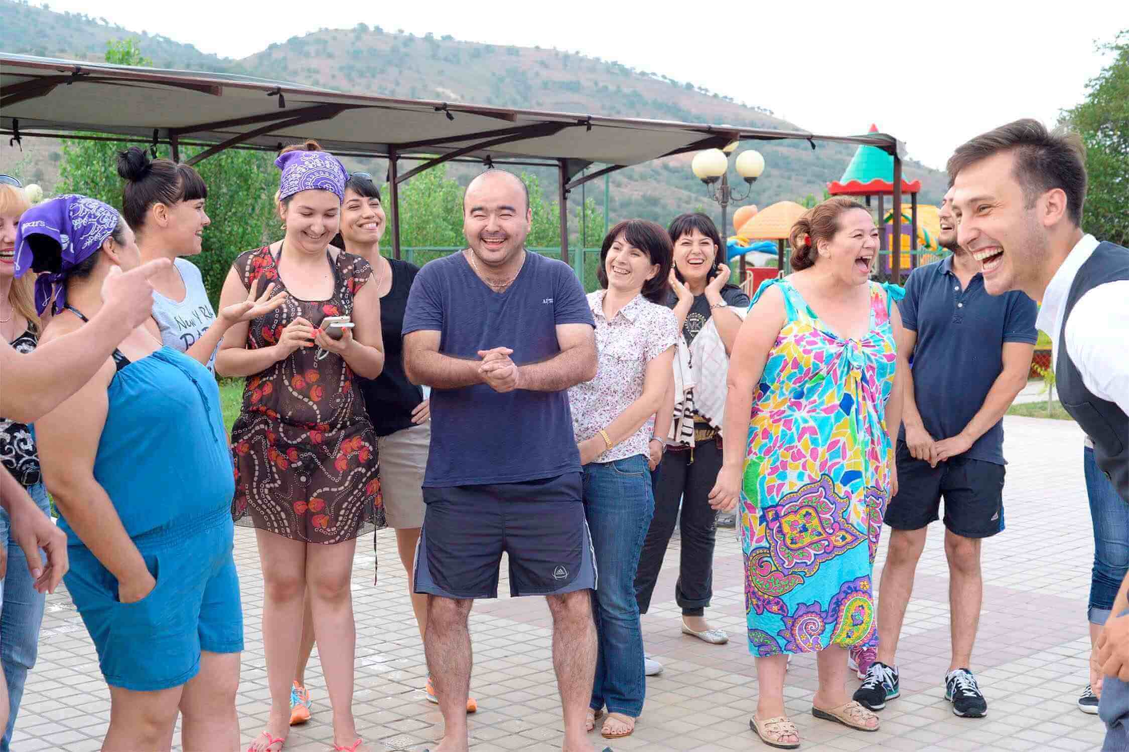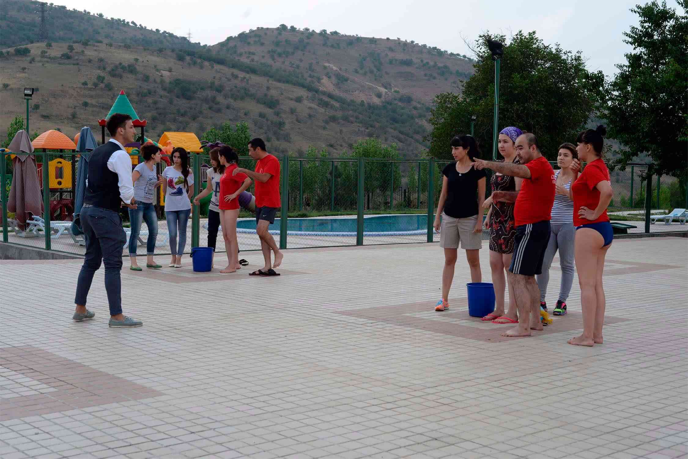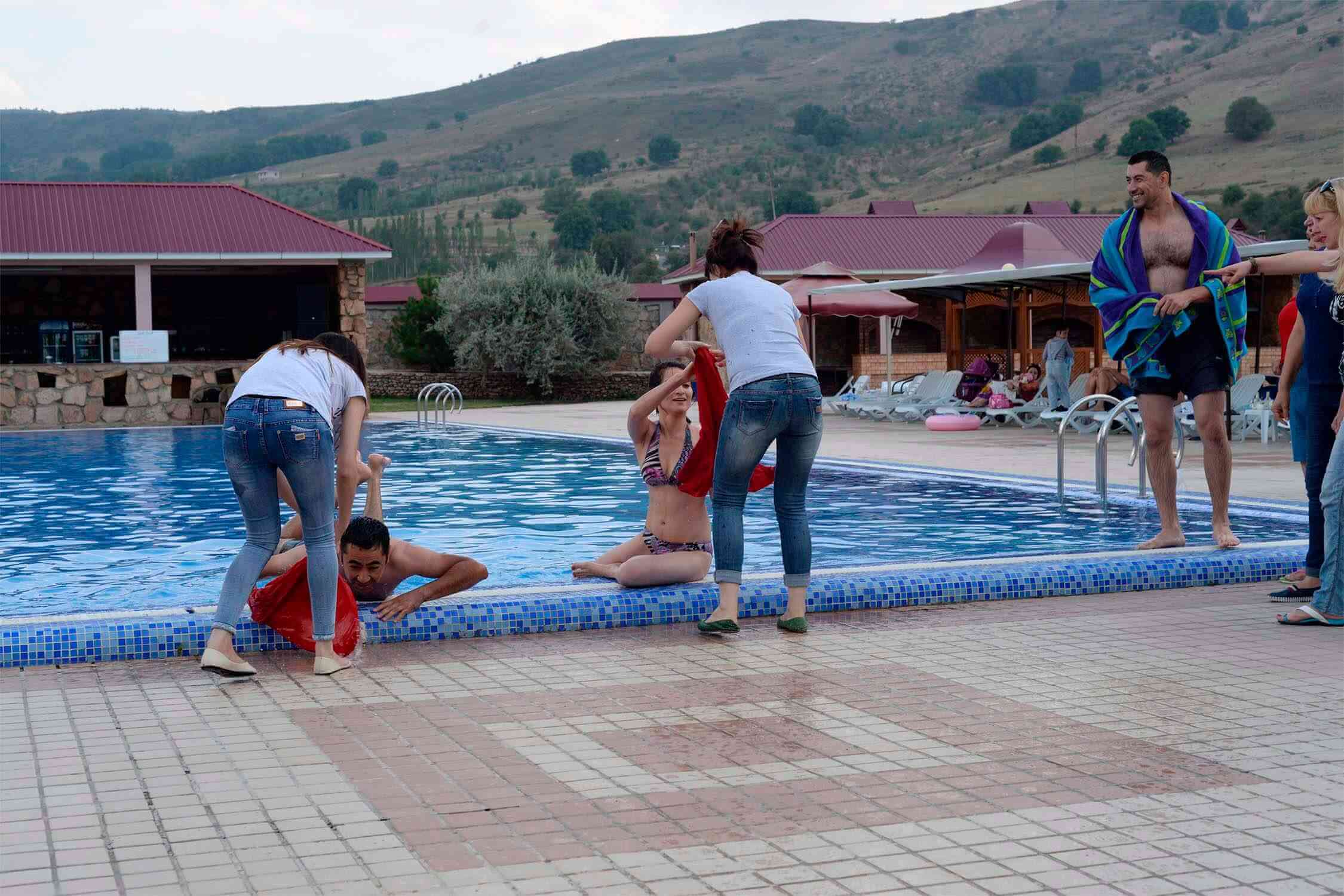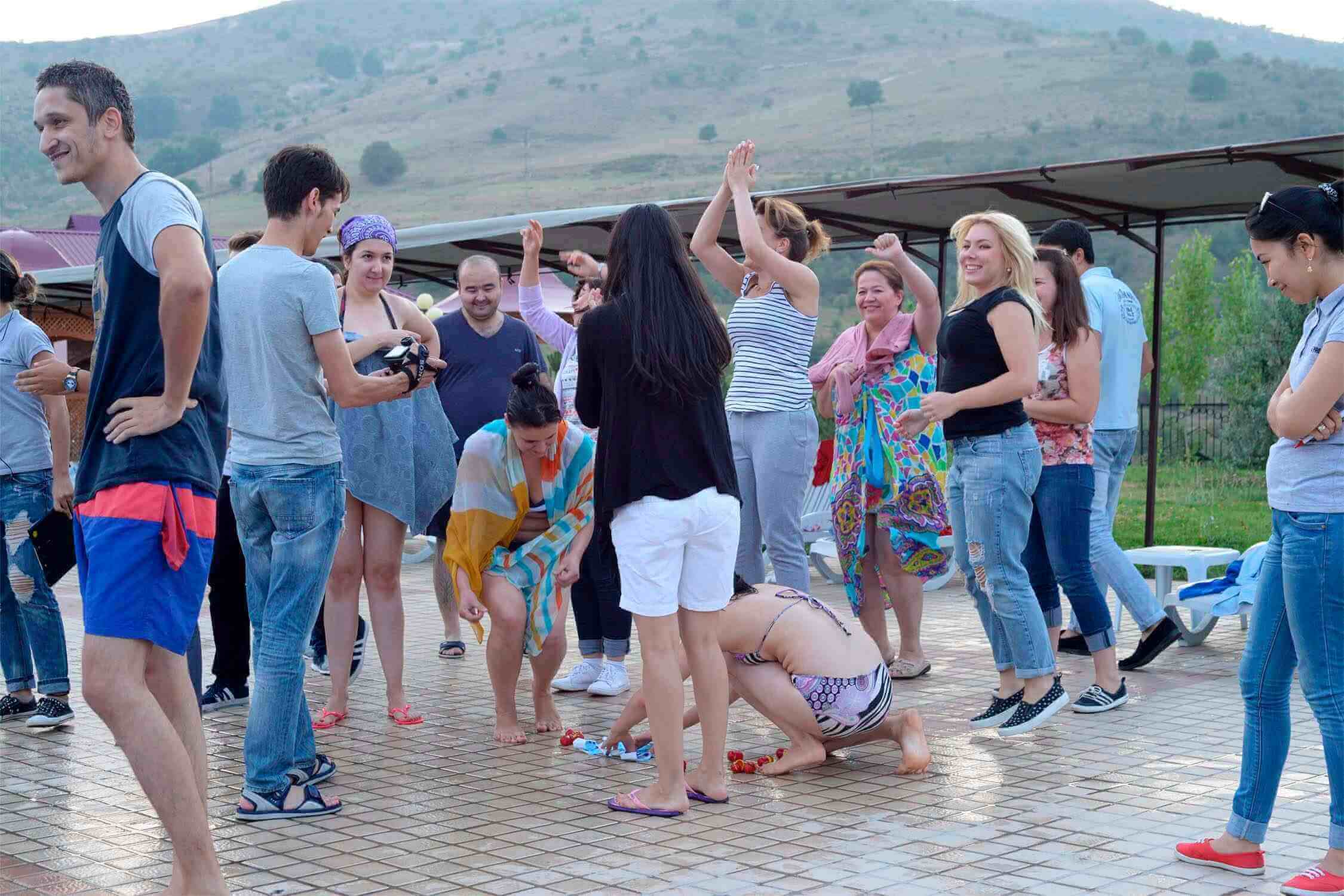 Летний водяной тимбилдинг прошел очень весело и зажигательно! Выжать в ведро как можно больше воды из бассейна, вытащить из воды и собрать все части мозайки и все это быстро и слажено – настоящая командная работа!