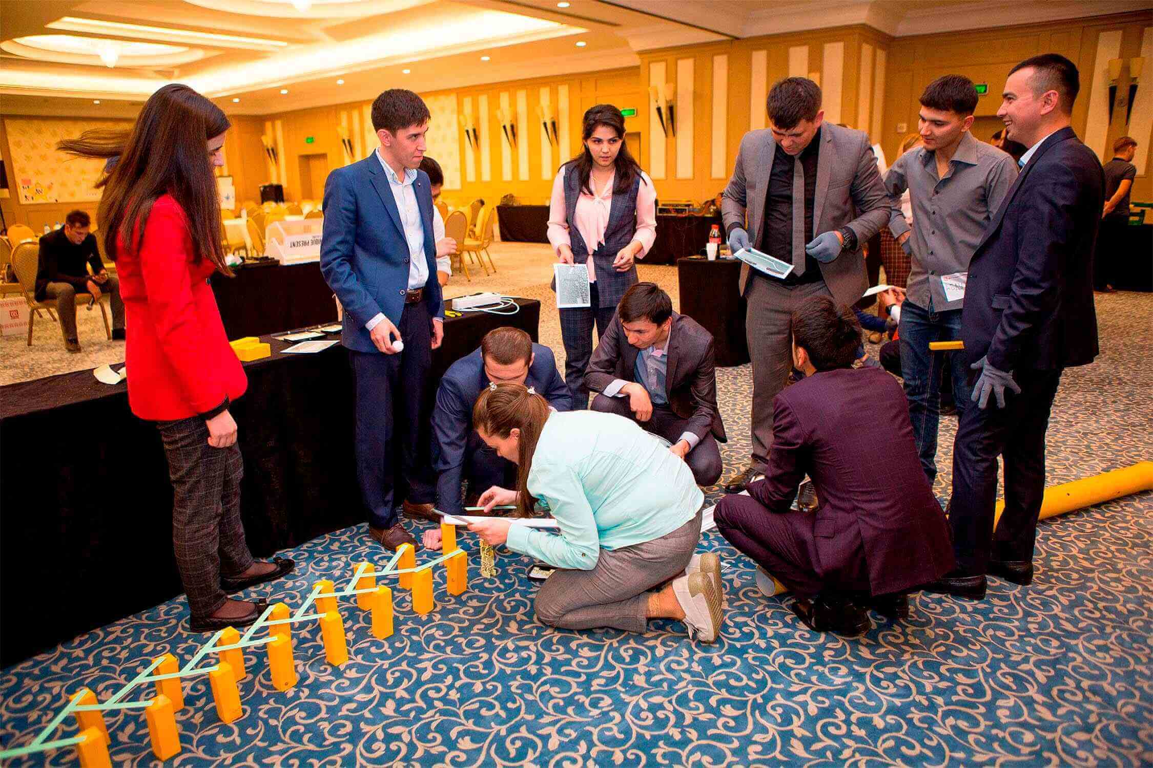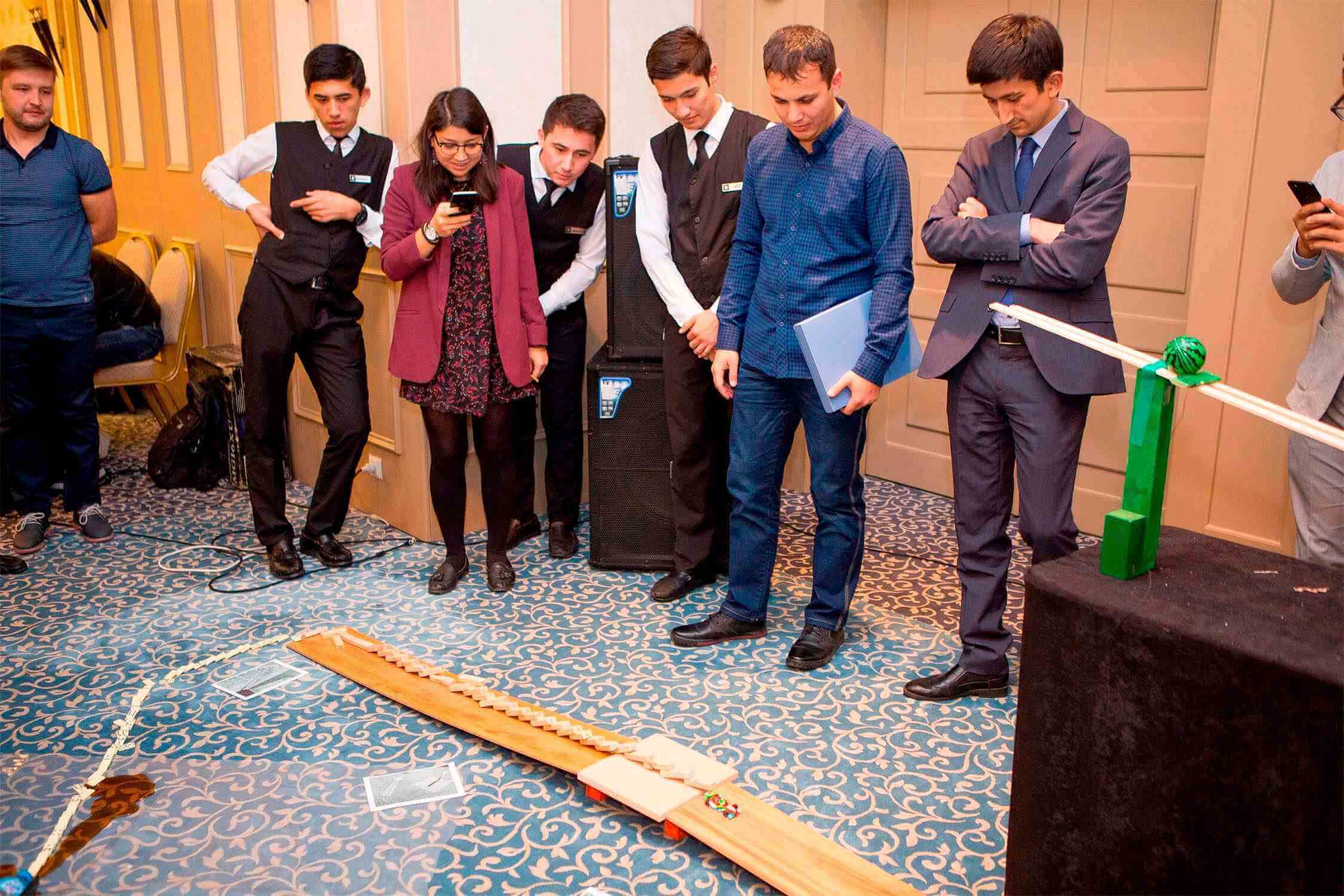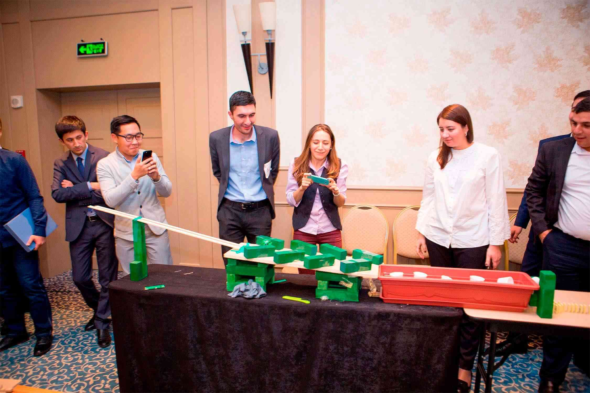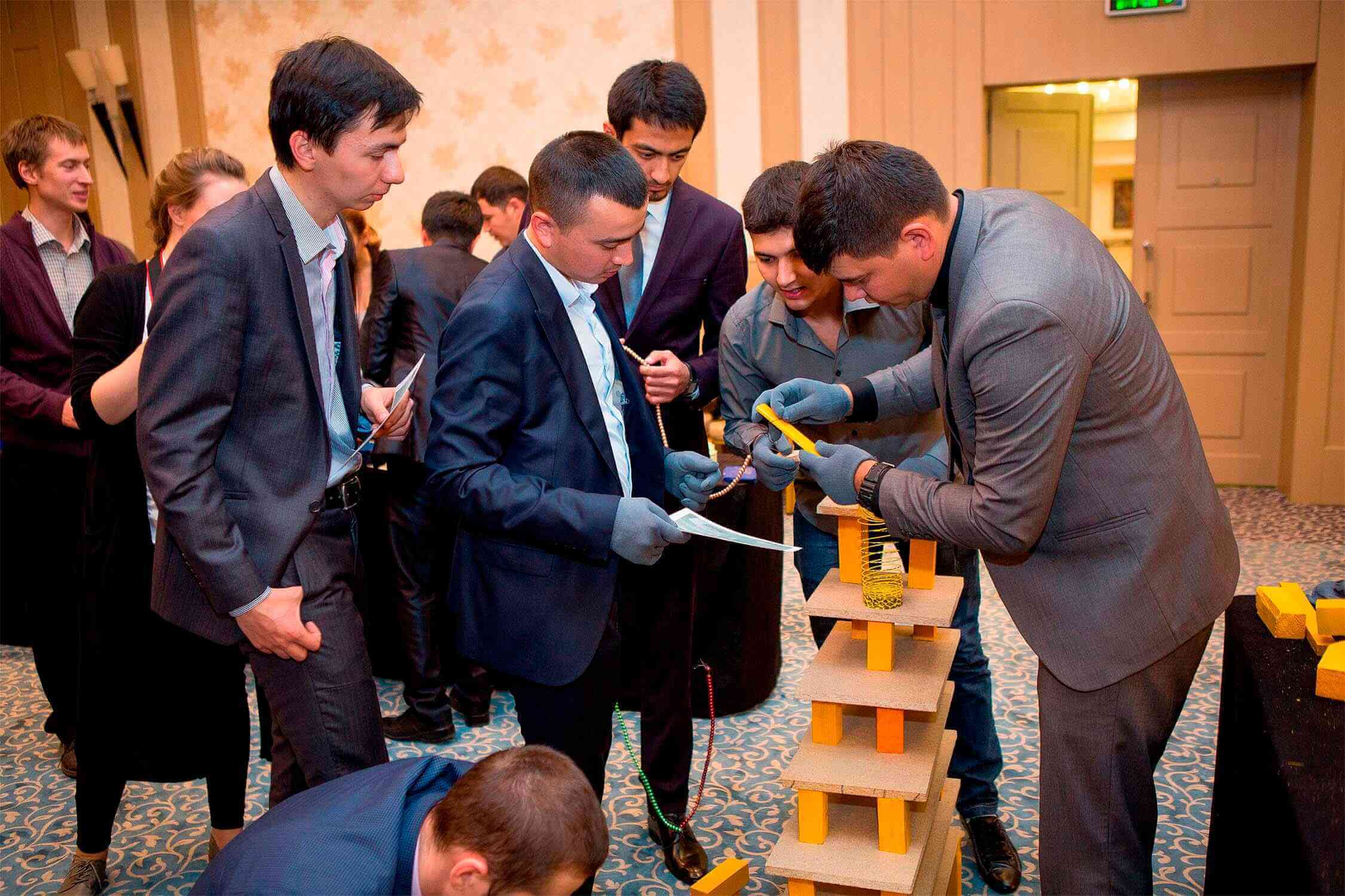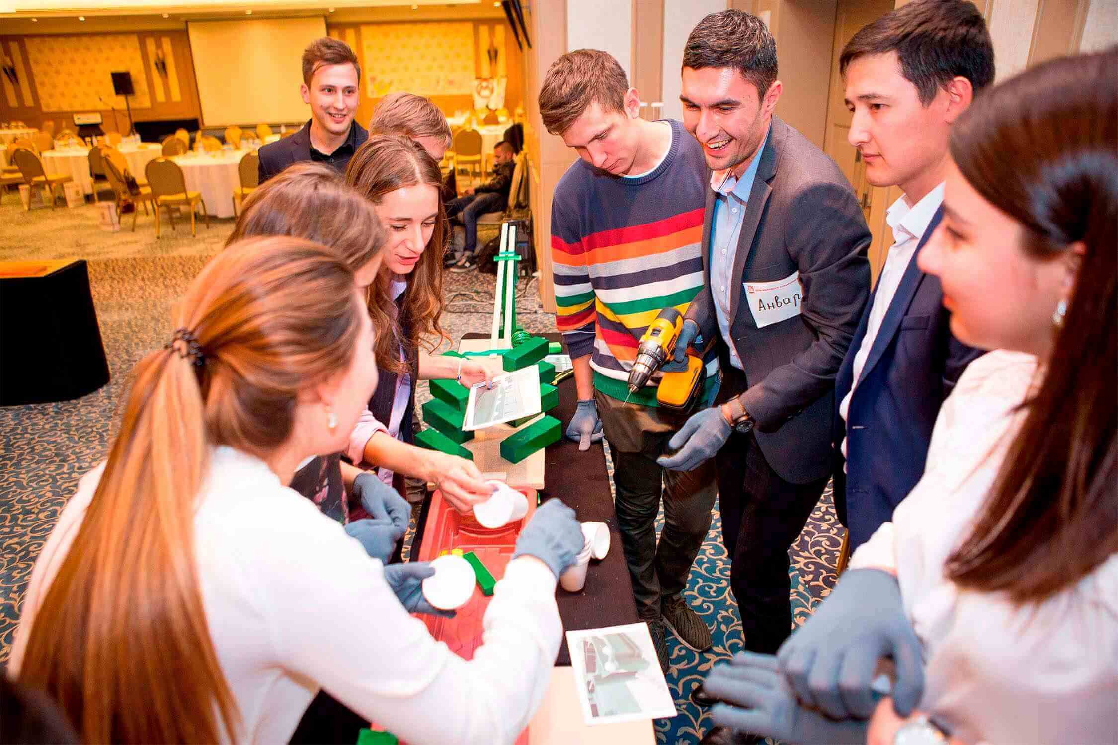Тимбилдинг прошел в рамках Дня молодого специалиста, где после тренинга, сотрудники разделились на команды и собрали единый механизм, который запустили одним движением в торжественной обстановке.