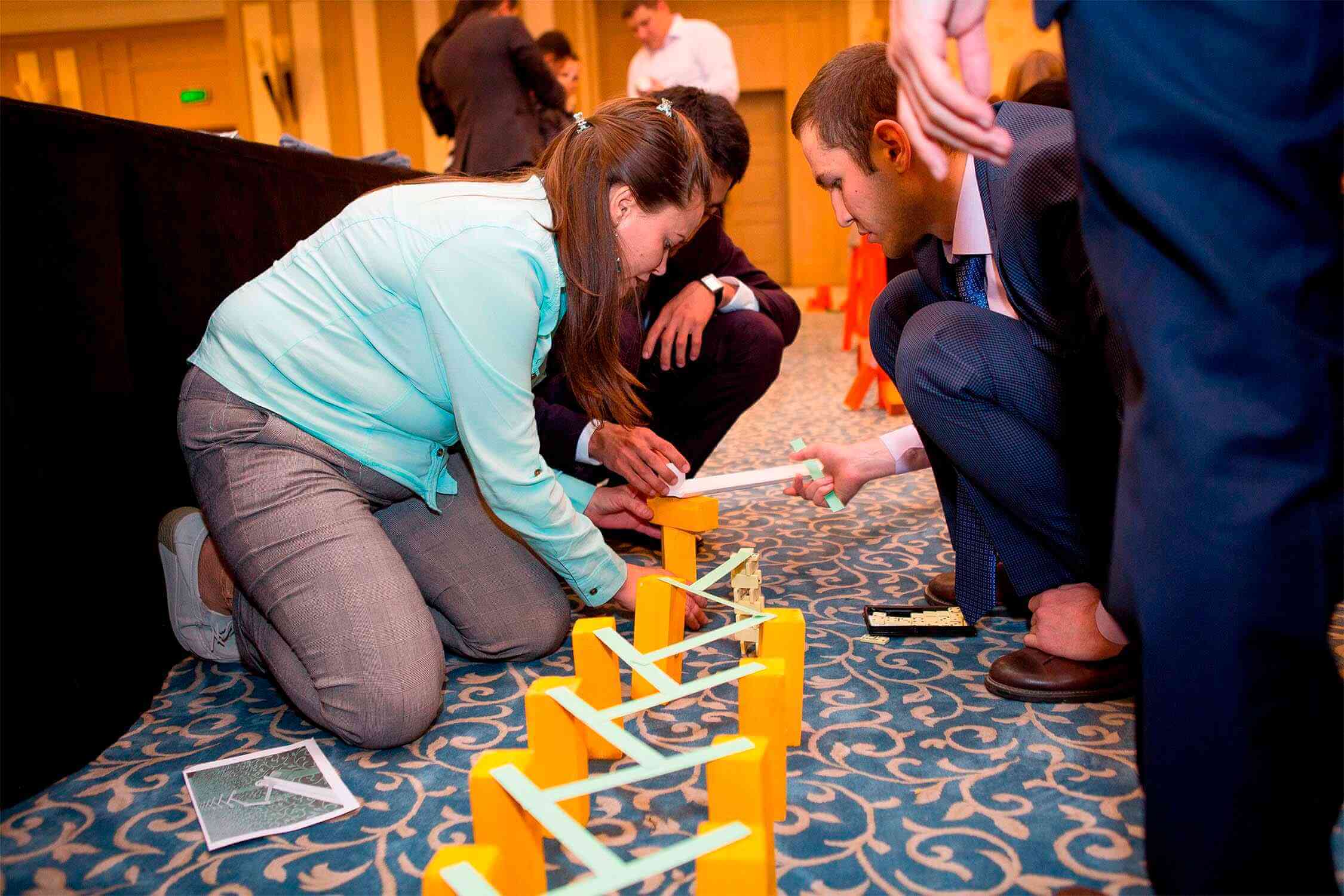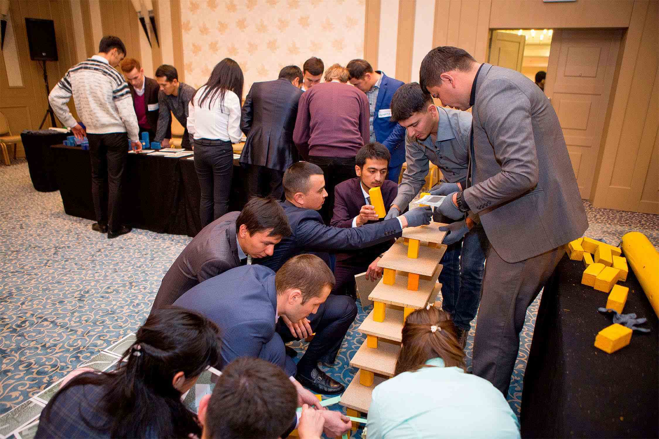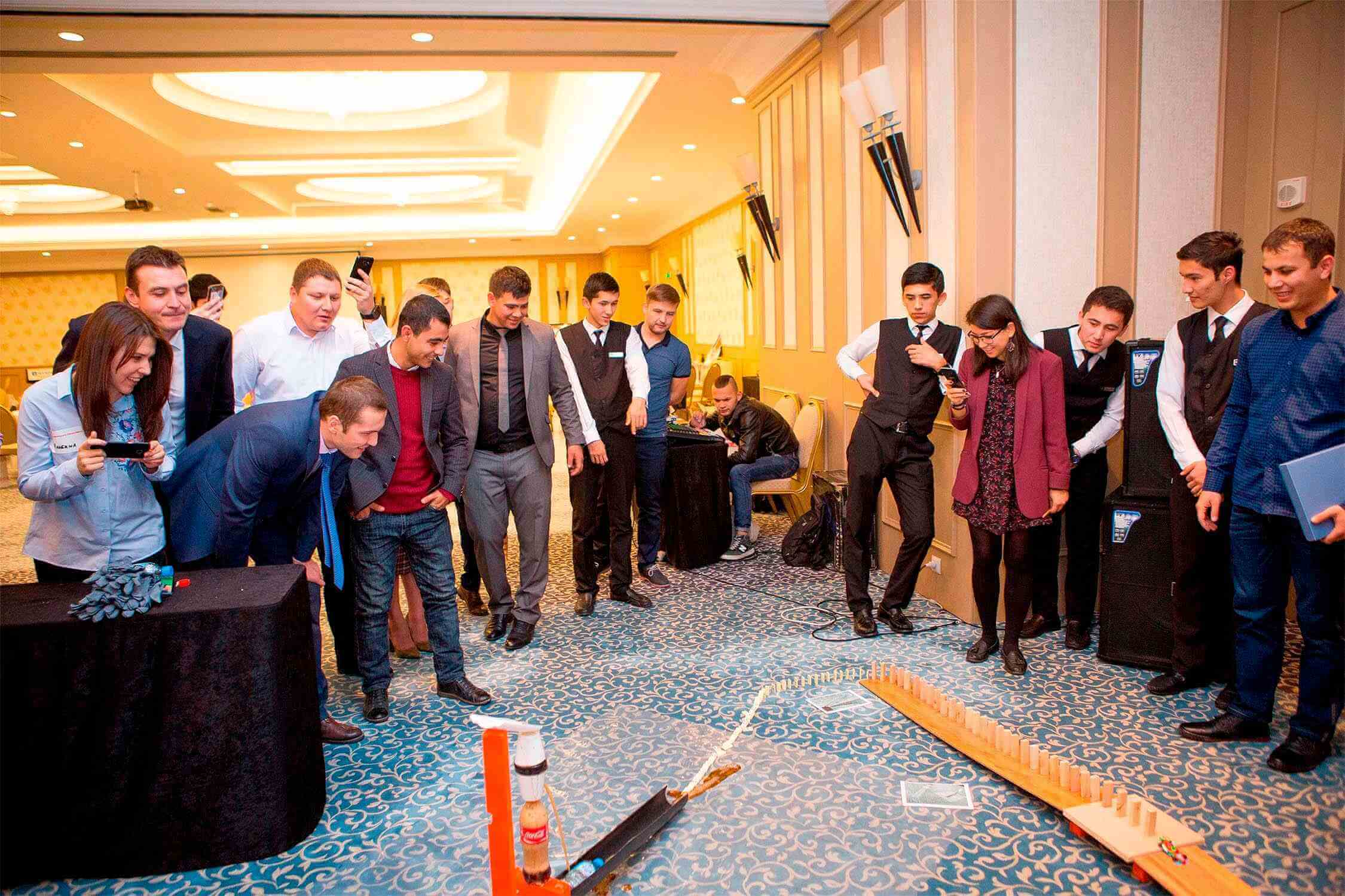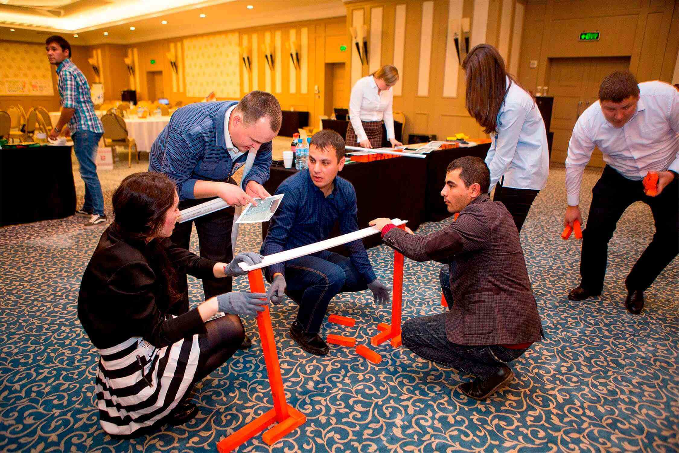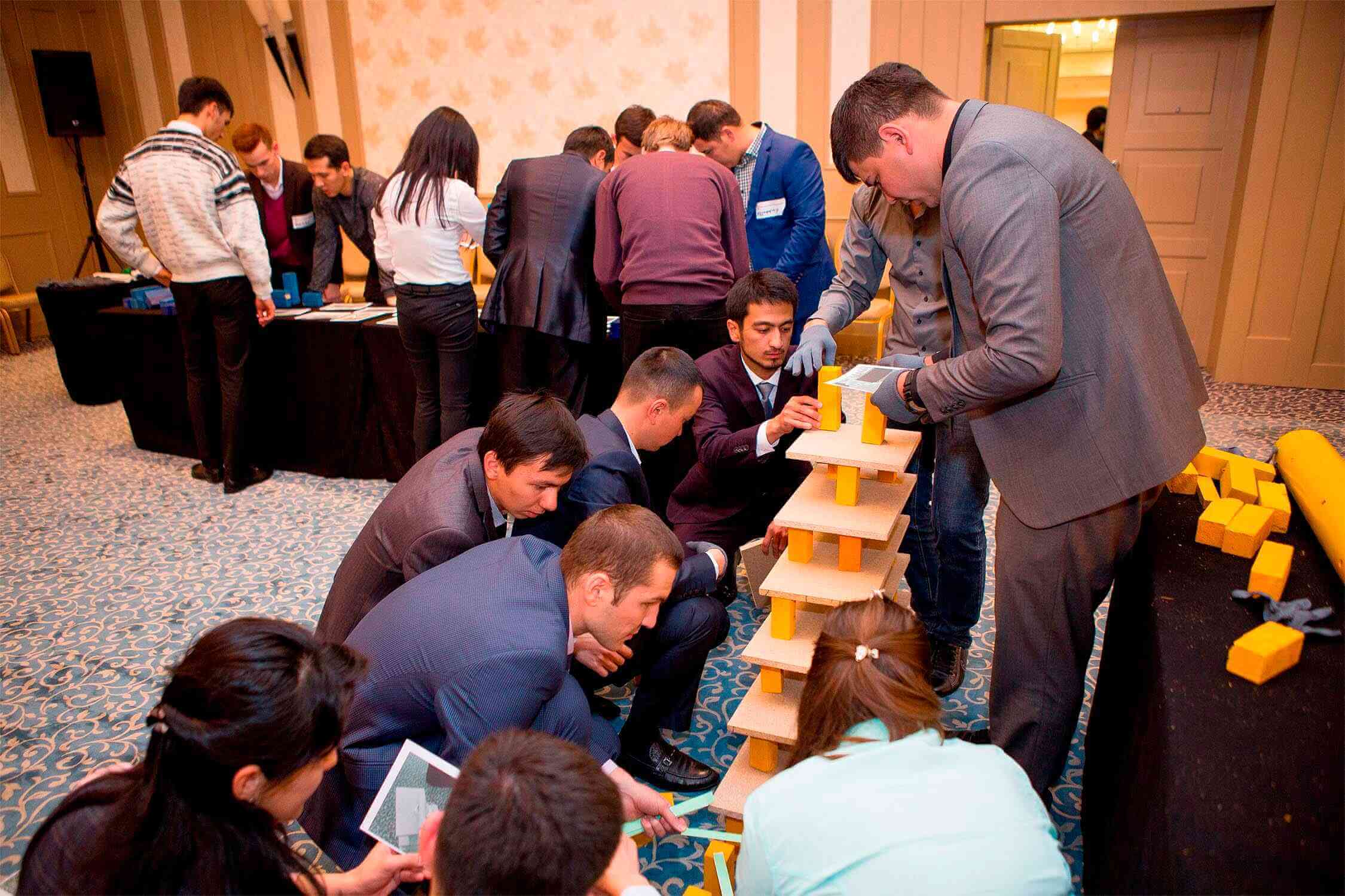 Тимбилдинг прошел в рамках Дня молодого специалиста, где после тренинга, сотрудники разделились на команды и собрали единый механизм, который запустили одним движением в торжественной обстановке.