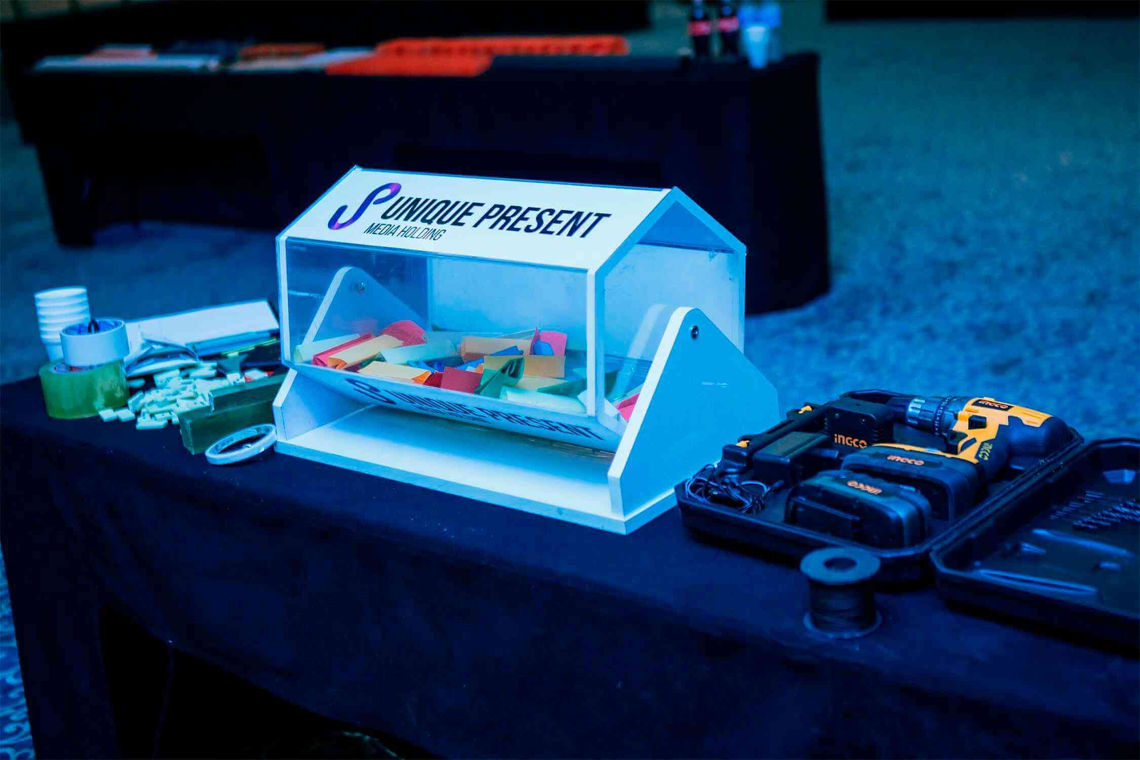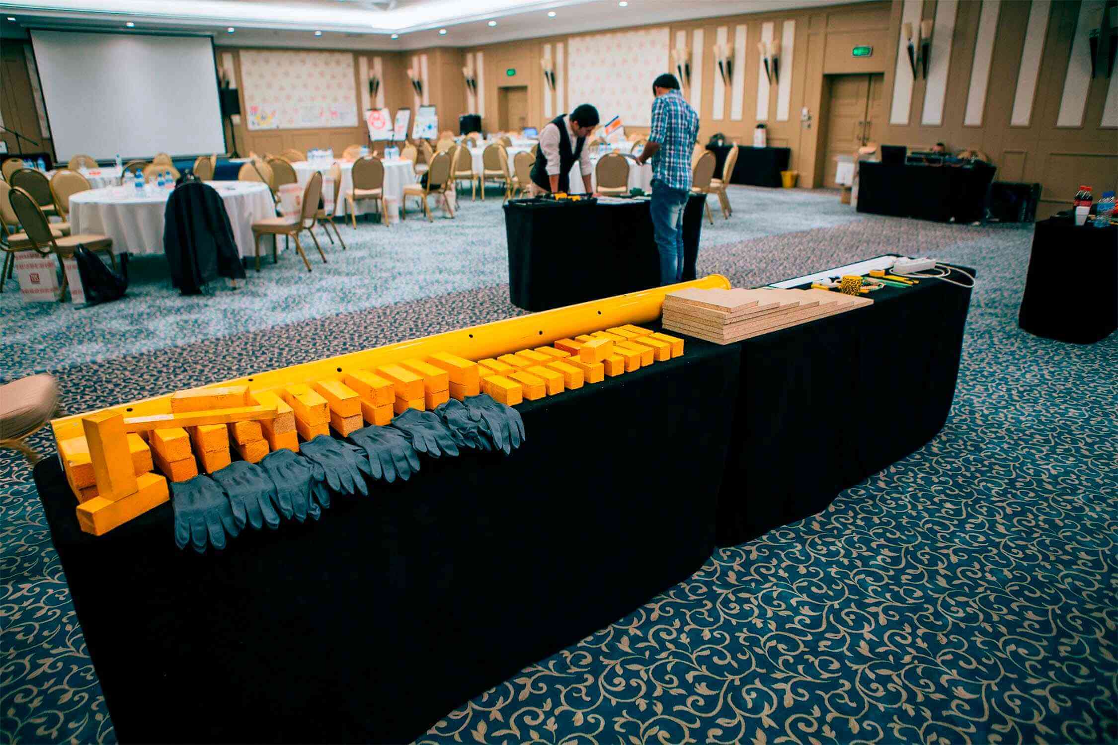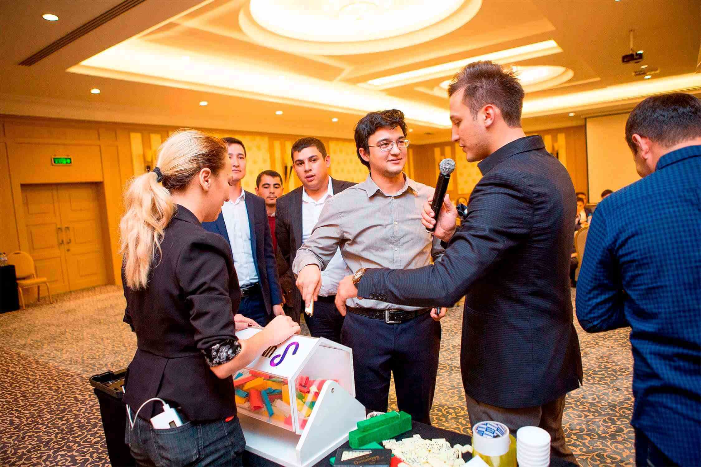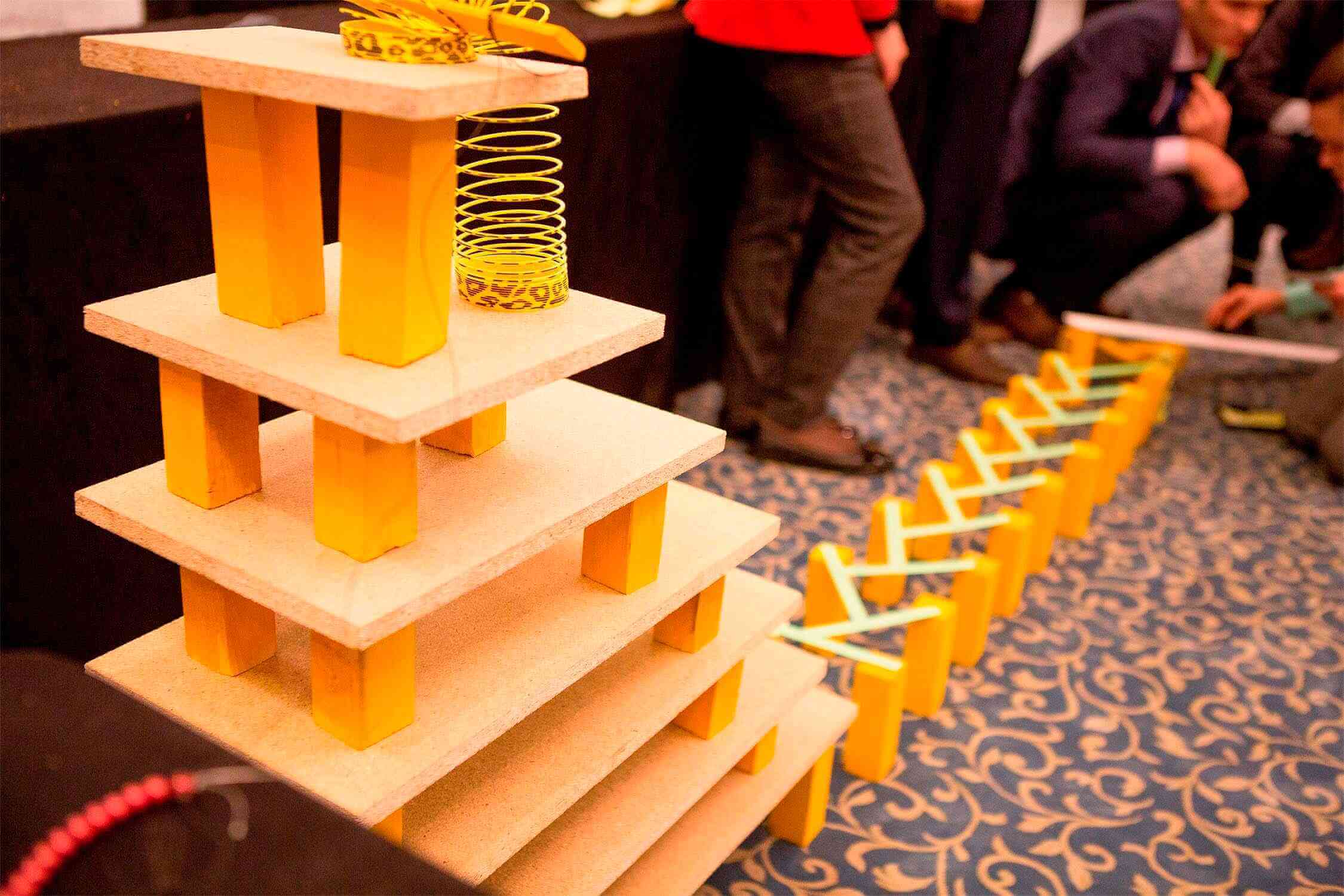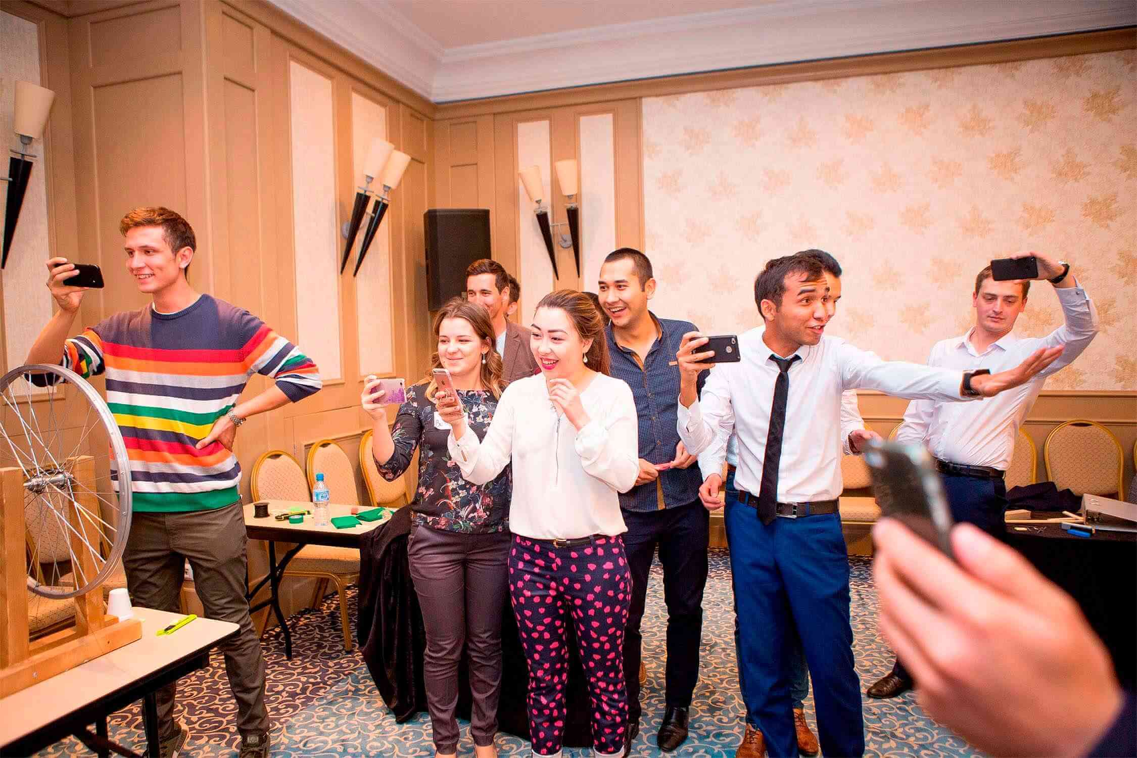 Тимбилдинг прошел в рамках Дня молодого специалиста, где после тренинга, сотрудники разделились на команды и собрали единый механизм, который запустили одним движением в торжественной обстановке.