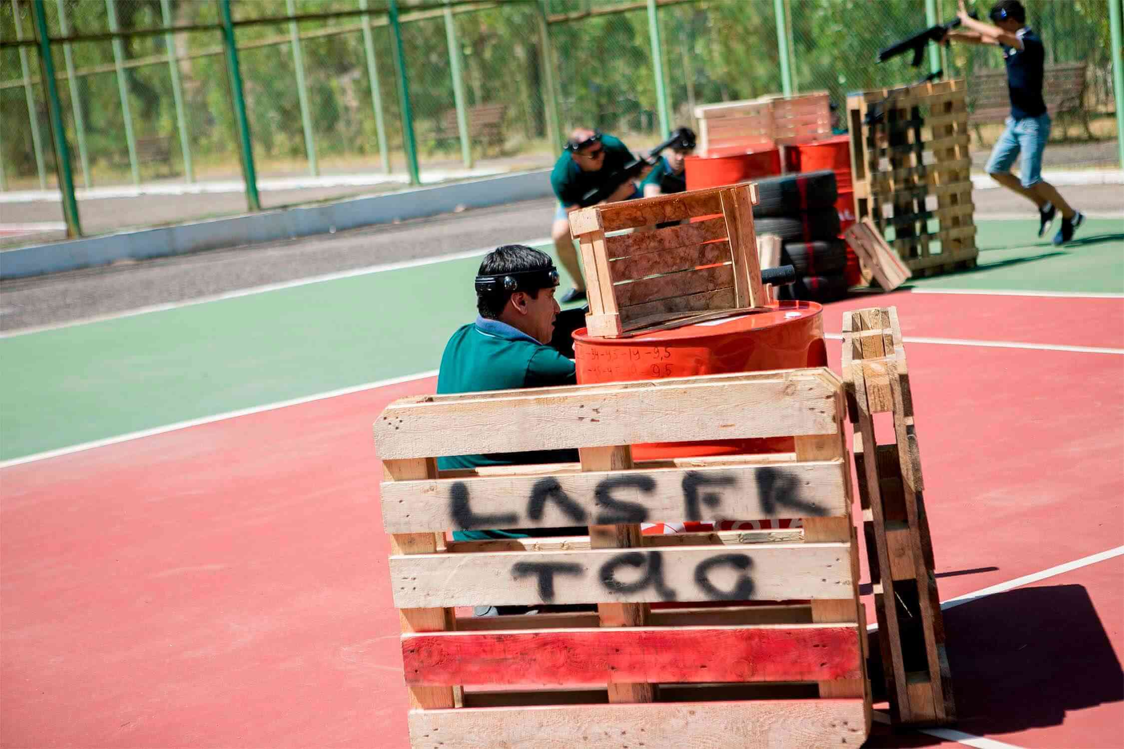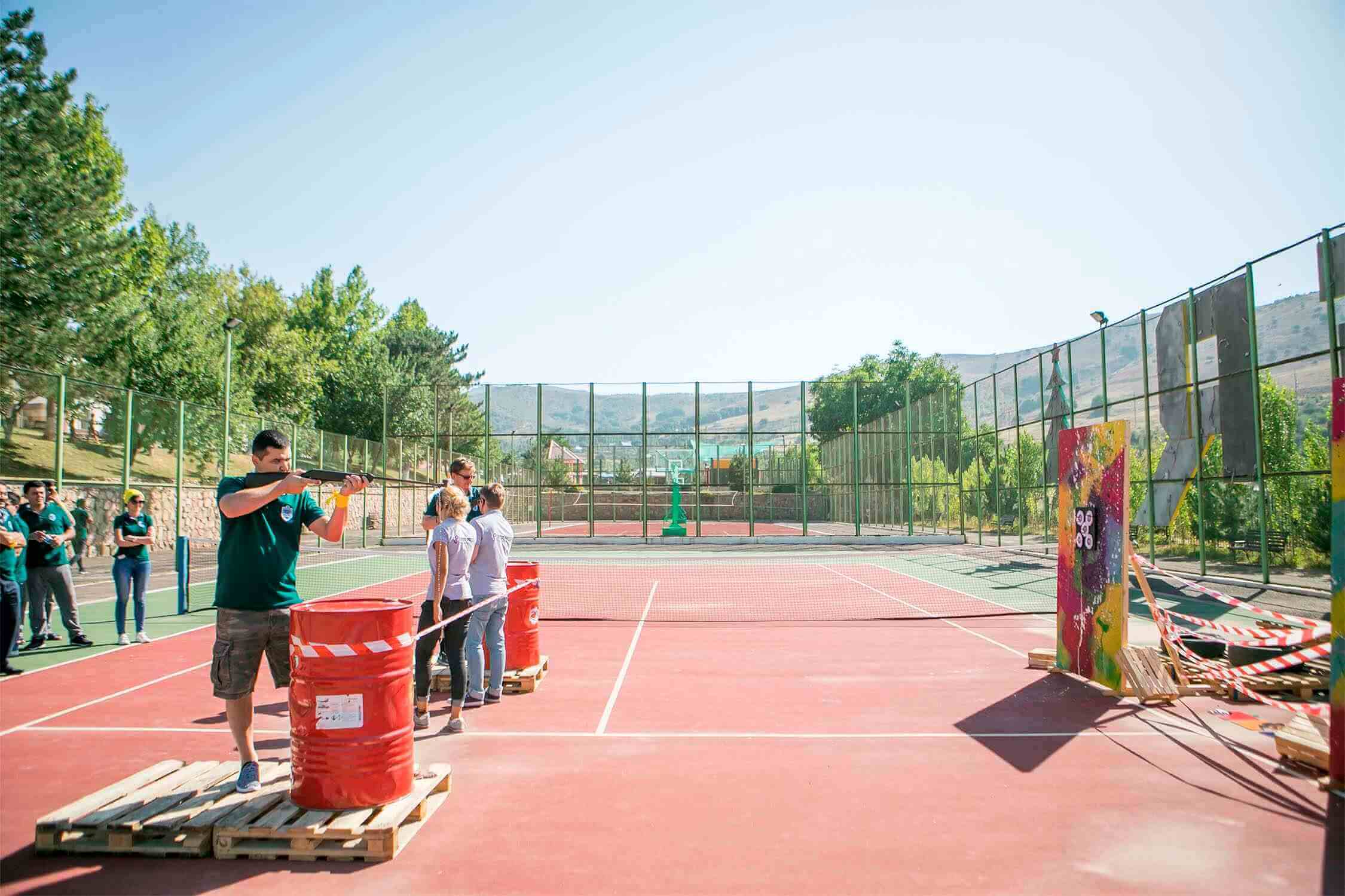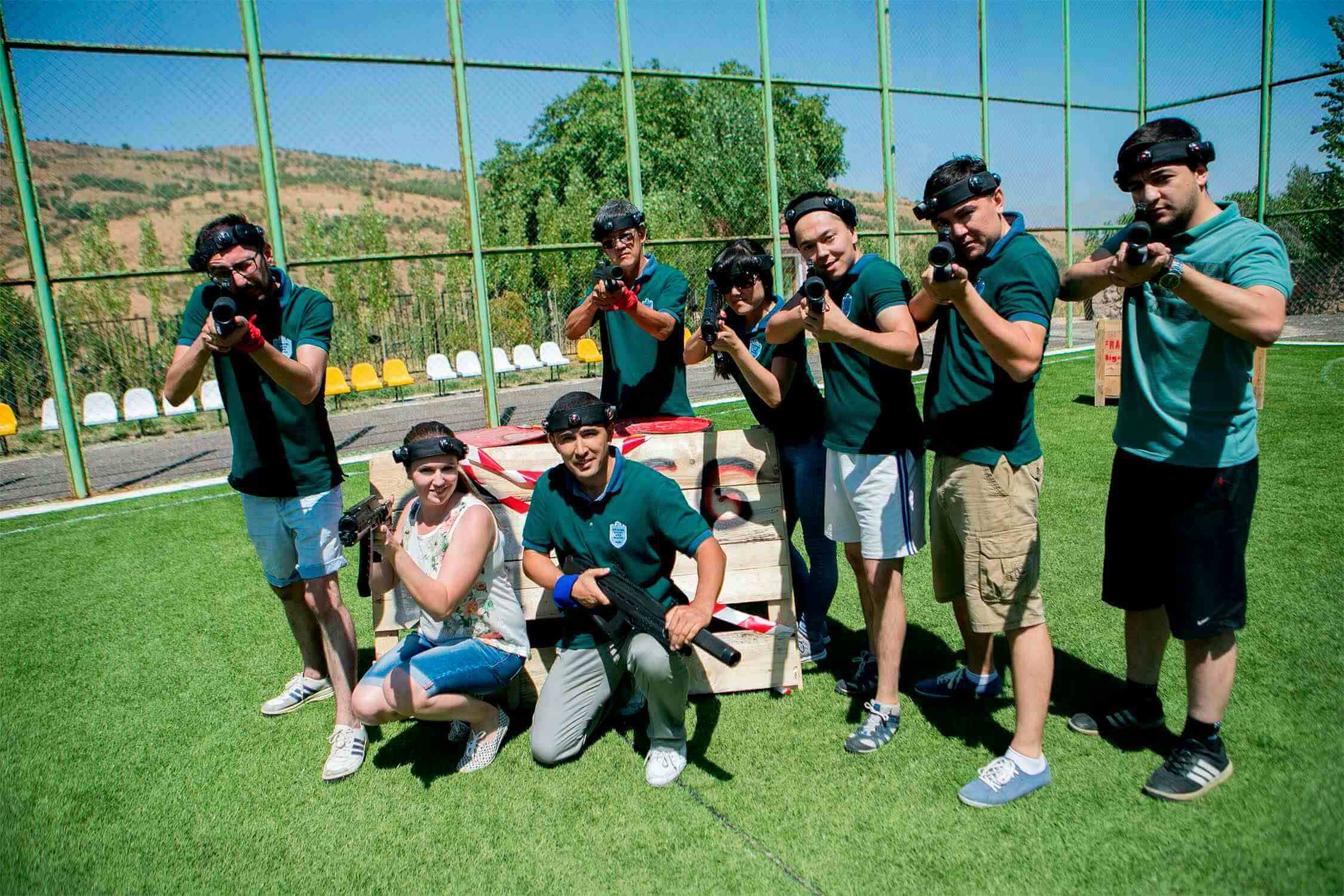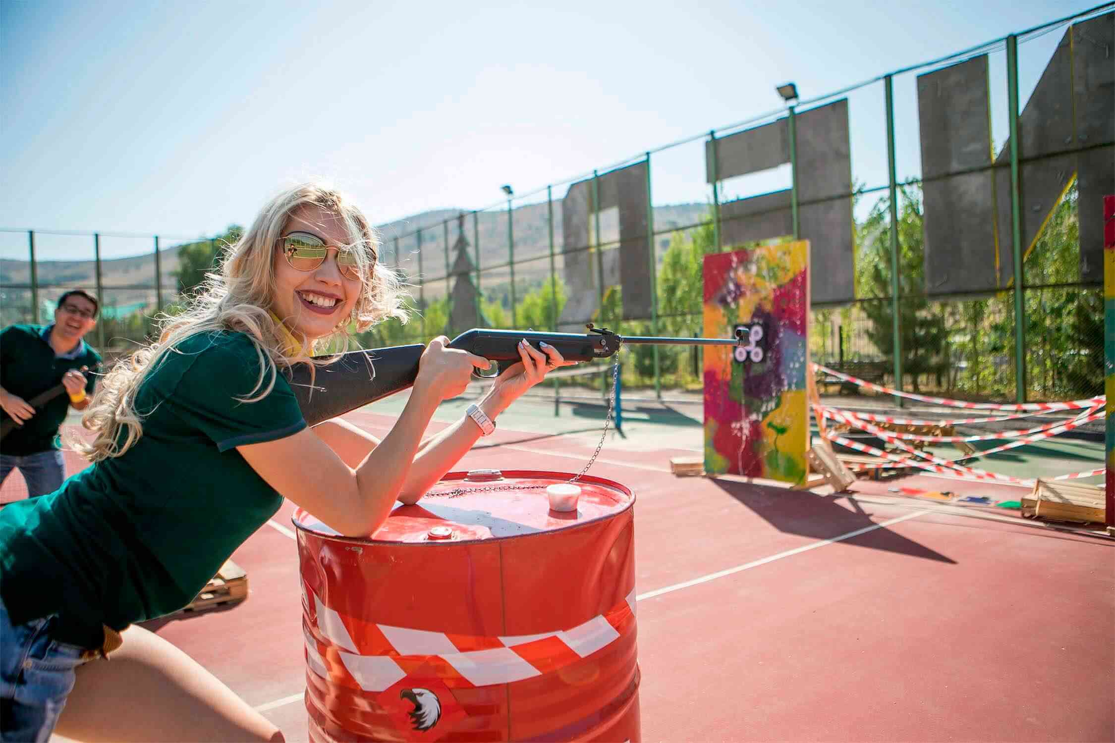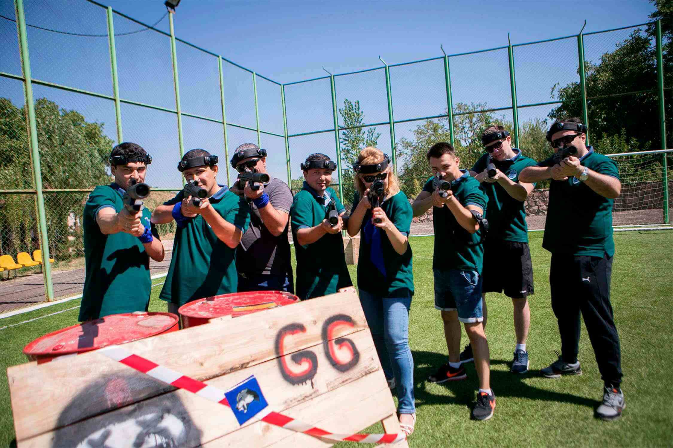Сотрудники компании поделились на команды, придумали и нарисовали флаги, а после посостязались в стрельбе – адреналин на поле боя был просто запредельным!